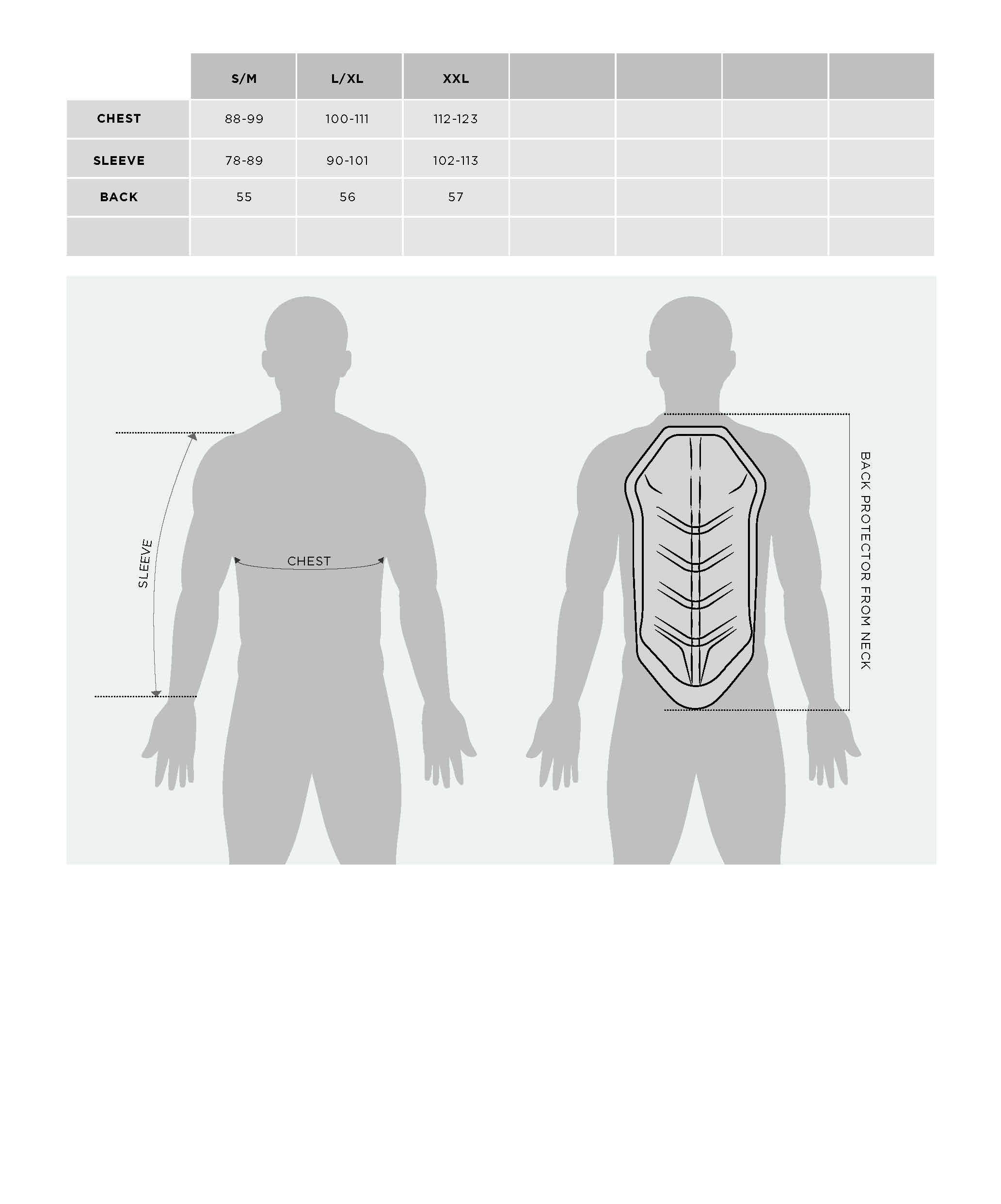 Protectia pentru spate, protectoare pentru umeri si cot, si piept sunt concepute pentru a oferi o potrivire mai buna datorita moliciunii materialului, care se adapteaza anatomiei corpului.